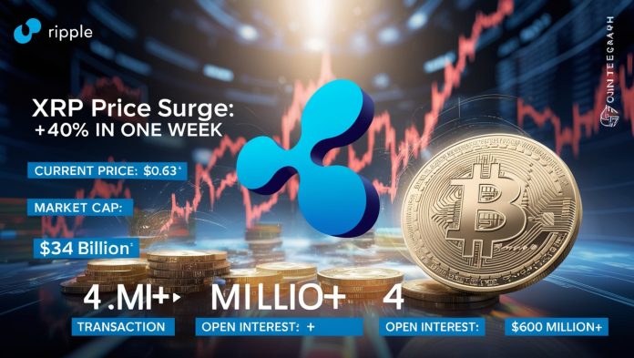 - XRP’s value soared by 40% in a week, briefly reaching $0.63 and becoming the sixth-largest cryptocurrency by market cap.
