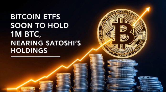 Spot Bitcoin ETFs are nearing a milestone, with their holdings set to surpass 1 million BTC, closing in on the amount held by Satoshi Nakamoto.